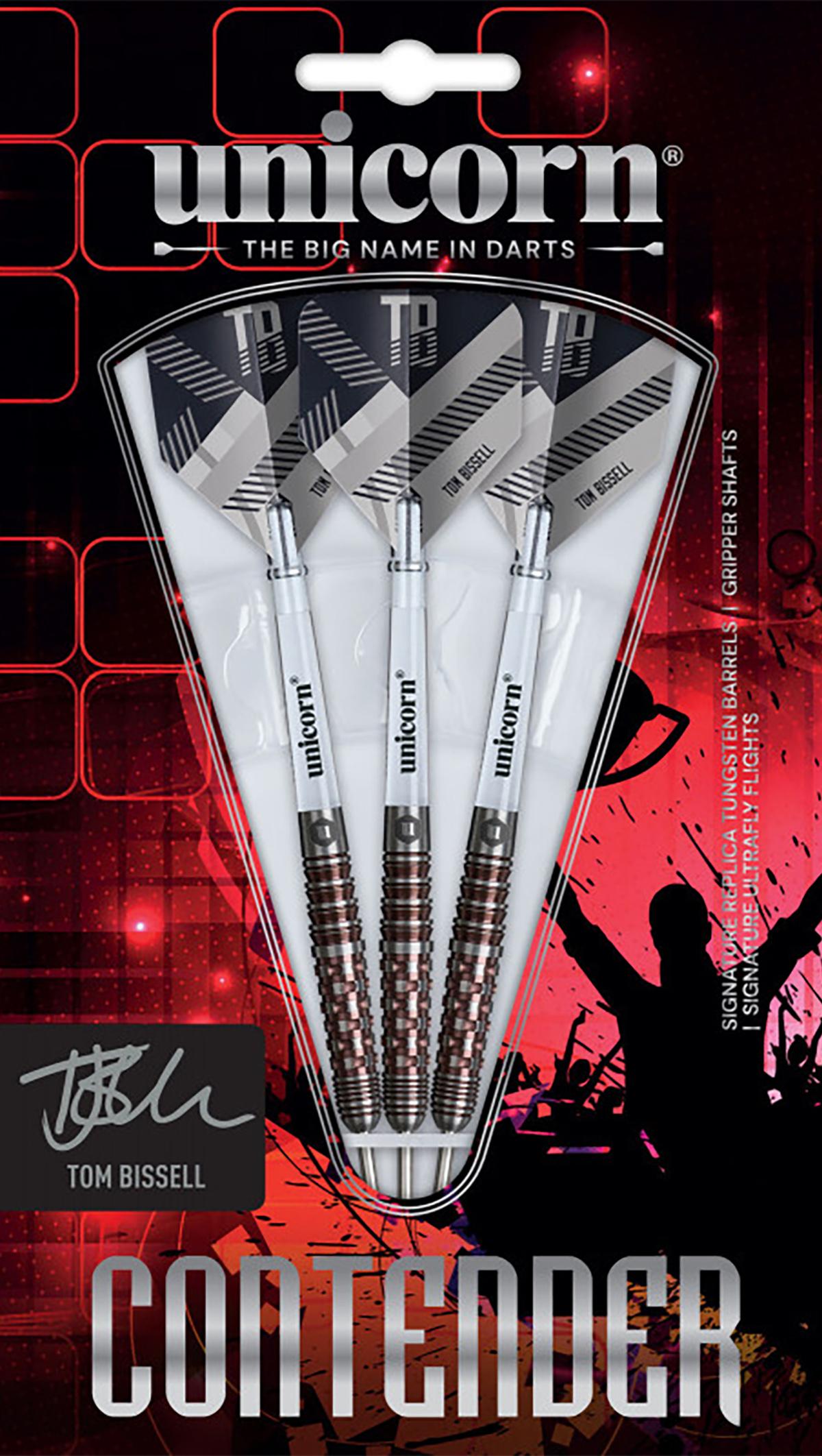 The Tom Bissell Contender dart features a 95% tungsten barrel engineered with a complex alternation of V and sharkfin cuts to deliver elite control for advanced players. At its centre, the revolutionary Wraith® grip provides superior hold for consistent, confident throws. Visually striking in a rosso PVD finish with clear Gripper 4 shafts, Tom’s barrels are equipped with a patented 36mm Volute® steel point, delivering exceptional sisal hold and longer dartboard life through its innovative CNC design.
